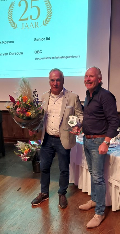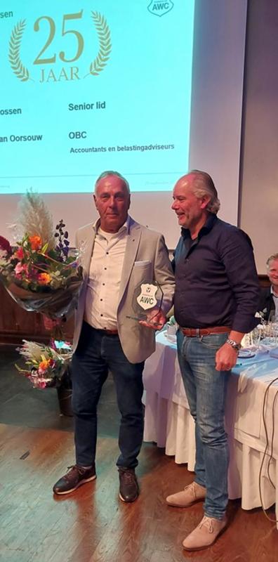 Als afsluiting waren er nog 2 jubilarissen die zich 25 jaar aan de BC hebben verbonden, waarvoor onze hartelijke dank. Sjaak Rossen, Senior lid en Peter van Oorsouw van OBC Accountants en belastingadviseurs ontvingen een mooie bos bloemen en het traditionele BC schildje van voorzitter Harm Rutten.