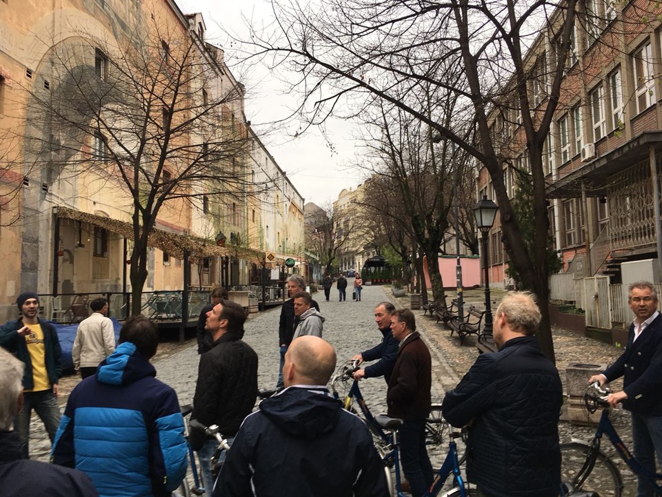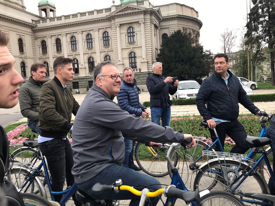 Tussen de twee activiteiten in mochten we genieten van een heerlijke lunch. Belgrado is niet echt een fietsstad en dus wel bijzonder om hier toch rond te fietsen. Als echte Hollanders hebben we ook op de fiets veel kunnen zien. Overblijfselen van de bombardementen maar bijvoorbeeld ook de middeleeuwse burcht waaromheen Belgrado is ontstaan.