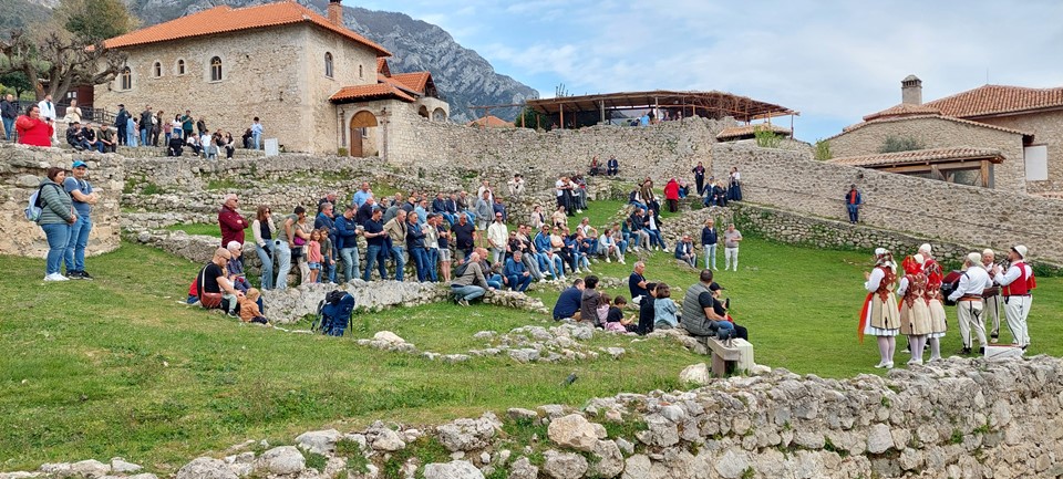 Tijdens de lunchpauze in het plaatsje Kruja genoten we van een authentieke Albanese lunch, compleet met lokale specialiteiten en verse producten uit de regio. Het was een welkome onderbreking waar we even konden ontspannen na de eerste etappe van de jeepsafari. Op deze locatie hadden we een schitterend uitzicht op het voormalige kasteel. Na de lunch gingen we te voet, via de oude bazaar, nog even richting de overblijfselen hiervan waar speciaal voor ons een optreden plaats vond.