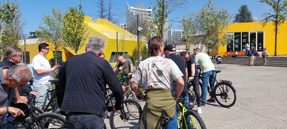 De fietstocht was zorgvuldig gepland (de groep in drieën gesplitst) door de organisatoren en bood ons de kans om de stad Tirana vanuit een ander perspectief te ervaren. Iedereen keek ernaar uit om de pedalen te laten draaien en de stad te verkennen.