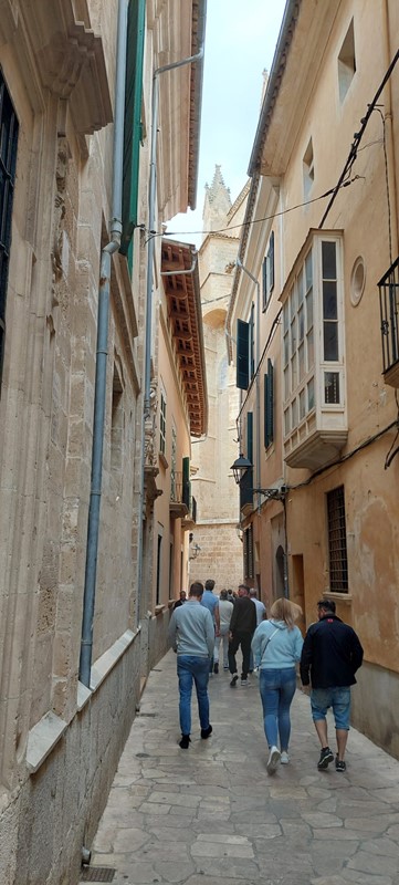 De 2de dag was de zwaarste van het weekendje. Al vroeg verzamelen voor een culturele wandeling door het oude centrum van Palma. In drie groepen werden we door gidsen door de historische stad geleid.