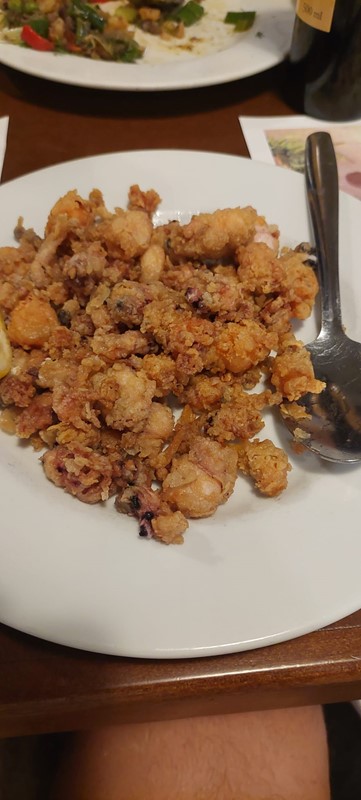 Rond half acht werden we verwacht bij restaurant Grand Siena aan de boulevard. Omdat we iets te vroeg waren weken we uit naar het naastgelegen Hard Rock café. Een bestelling van 45 glazen bier werd met lichte paniek ontvangen. Maar het voorgeschotelde diner was top, inclusief de wijnen. De uitschieter was de secreto van het Iberico varken............. om te versmaden.