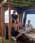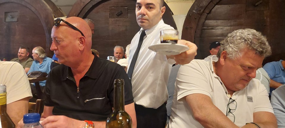 Tussendoor gebruik makend van een terrasje verhoogde het vakantie gevoel. De gezamenlijke lunch(in een authentieke wijnkelder) die volgde was echt nodig voor een goede basis voor de zware boottocht die hierop volgde. De Badia de Palma, die uitmond in de Balearische Zee, was behoorlijk onrustig. Het gemis van onze reisleider, die met maagklachten liever aan wal bleef, had geen consequenties voor de rest van de boottocht. Zijn vervanger behield het totale overzicht door zich gelijk aan de bar te settelen en zo nodig direct maatregelen kon nemen……..dachten we althans.